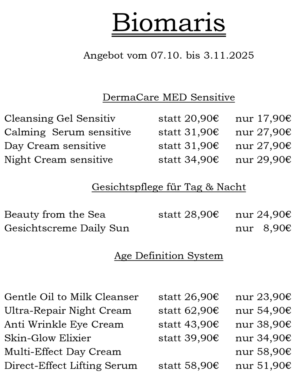 Wir führen ein reichhaltiges Sortiment an BIOMARIS Produkten.