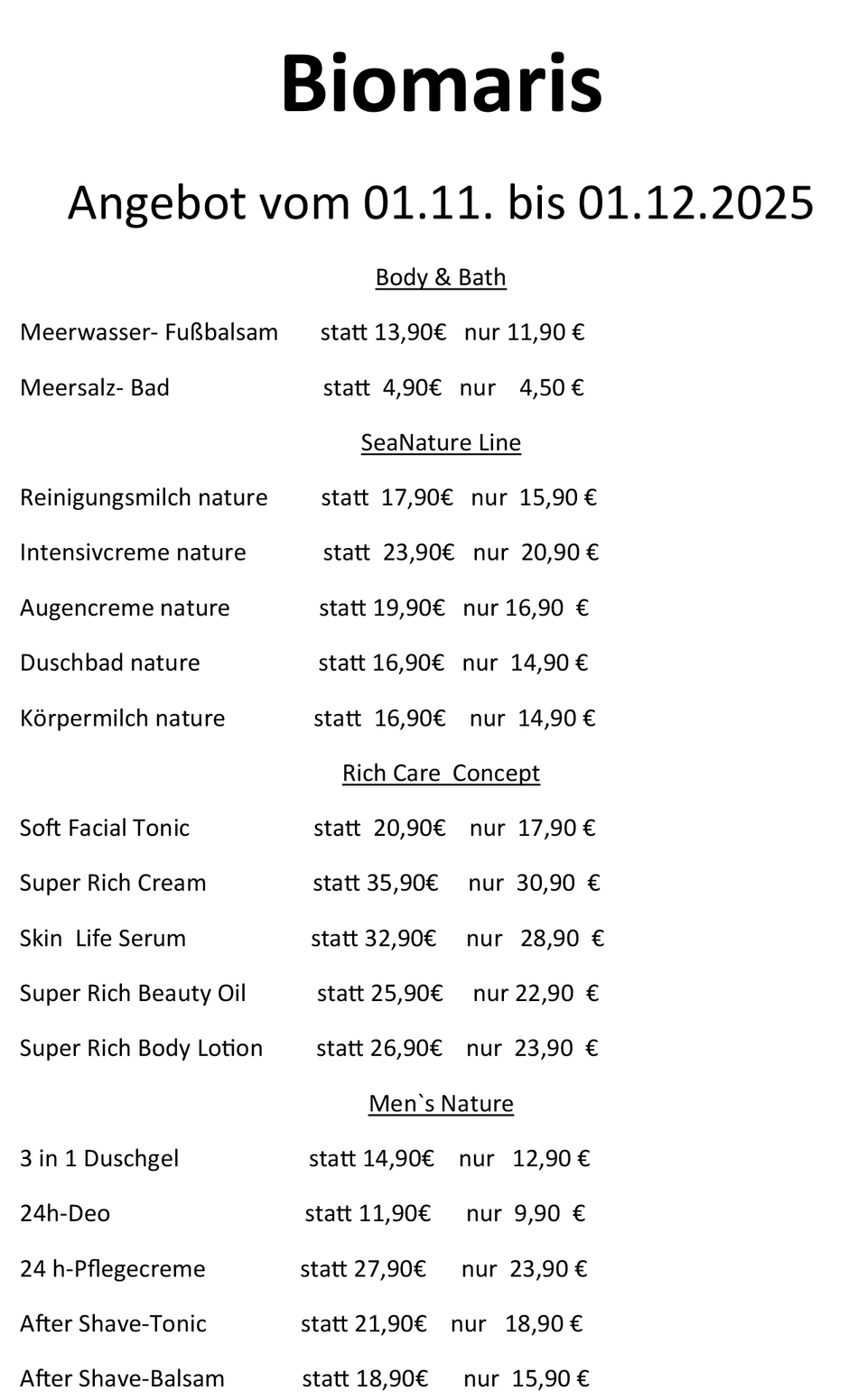 Wir führen ein reichhaltiges Sortiment an BIOMARIS Produkten.